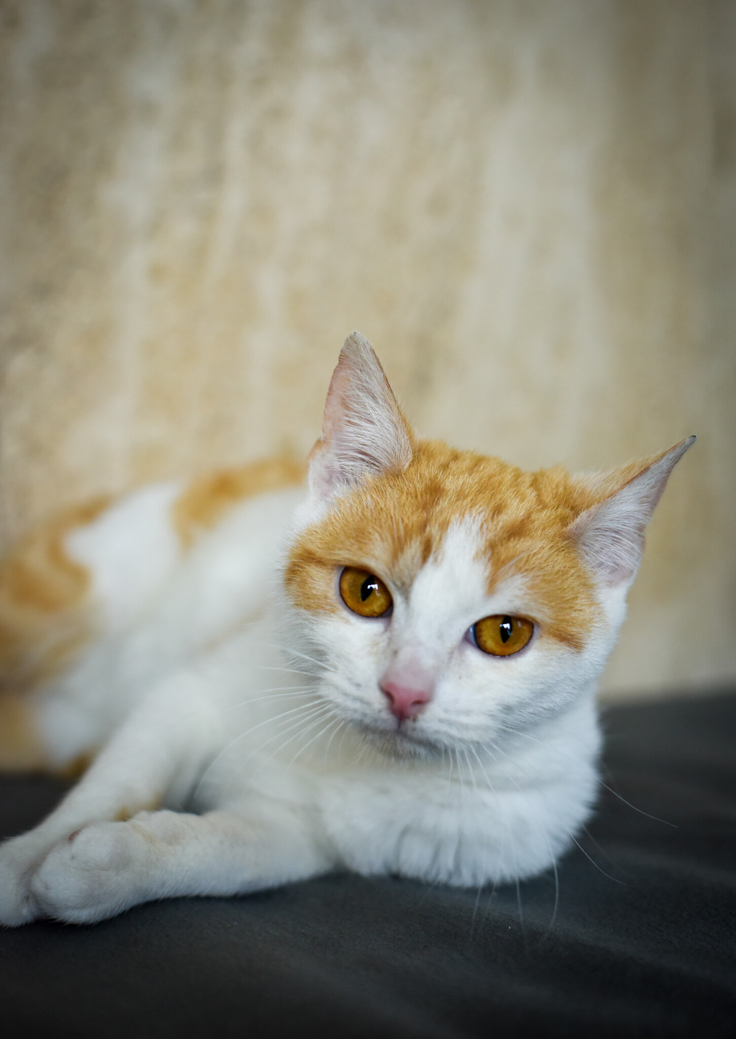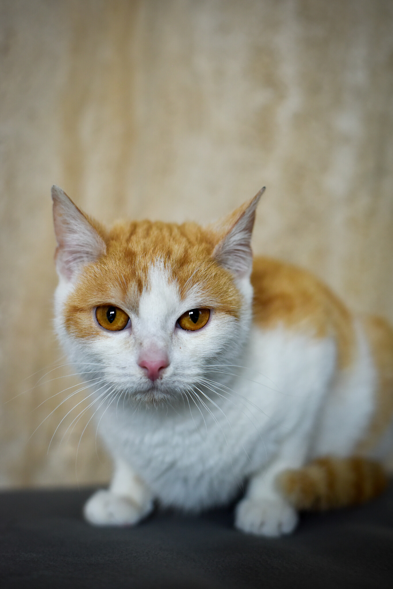 Poznaj tego uroczego kociaka w wieku ok. 5–6 miesięcy! Jego biało-rude umaszczenie wygląda jak najpiękniejsze dzieło sztuki, a spojrzenie… rozpuszcza serca w sekundę 😻